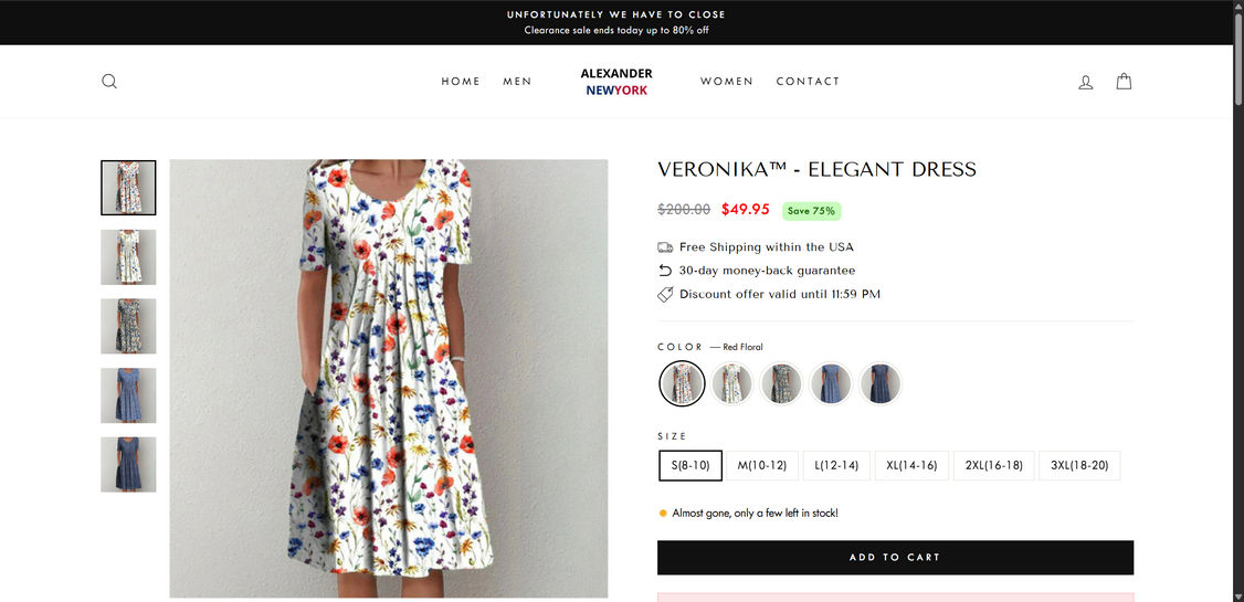 Scammers behind Alexander-newyork.com use spam emails and social media platforms like Facebook, Instagram, and TikTok to promote the site and lure in victims. This fraudulent site uses incredibly low prices and stolen product images to entice unsuspecting shoppers.