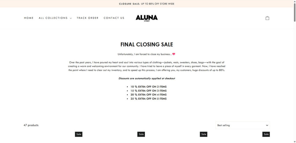 - Extreme, unrealistic discounts such as “90% OFF,” “Store Closing Sale,” or “Final Liquidation.” Real retailers rarely discount new products this aggressively.