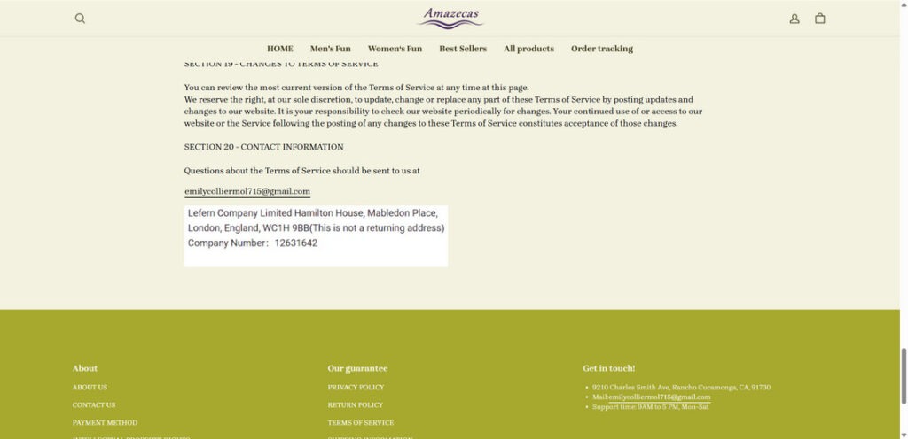Amazecas.com does not provide that level of accountability. In most cases, the only “support” offered is a generic email address and a basic contact form. That is a major red flag because it is easy to ignore, delay, or abandon, leaving buyers with no practical way to resolve non-delivery, wrong items, charge disputes, or refunds.