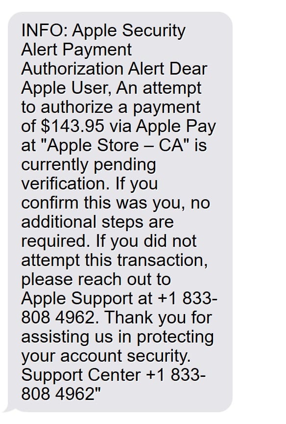 What the fake Apple Pay message often looks like