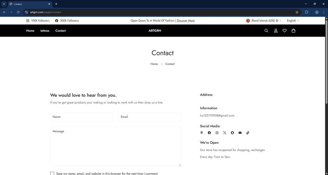 Authentic brands maintain social media pages for customer engagement. Artgrn.com’s total lack of accounts is highly unusual and suspicious.
