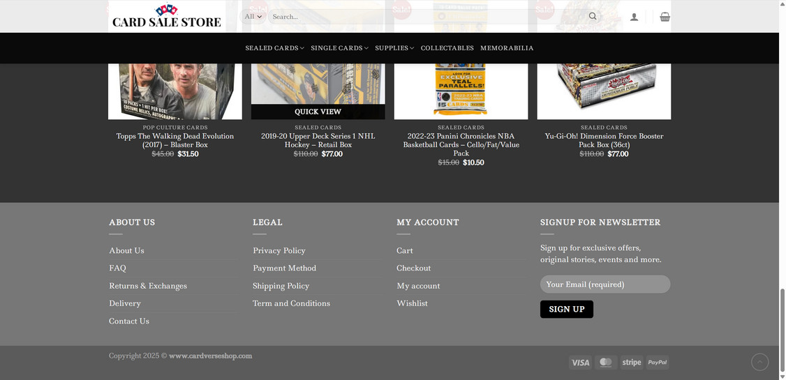 All product info and images are stolen from other major retailers. Cardverseshop.com lacks any original content showing its illegitimacy.