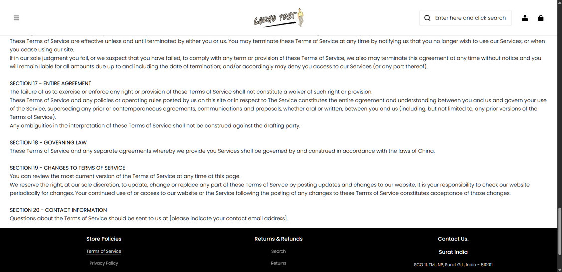 All product info and images are stolen from other major retailers. Cargofest.store lacks any original content showing its illegitimacy.