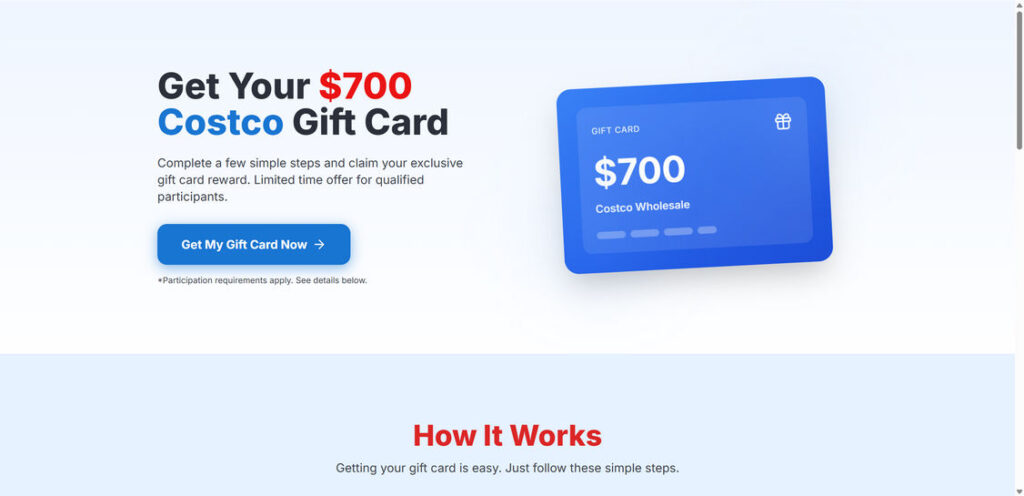 On the surface, the site looks legitimate. It uses Costco’s familiar red and blue logo, minimalist design, and persuasive marketing language. It advertises an “easy review process” and “instant approval.” However, the promises made are false. There is no official Costco review program offering such high payouts for feedback.