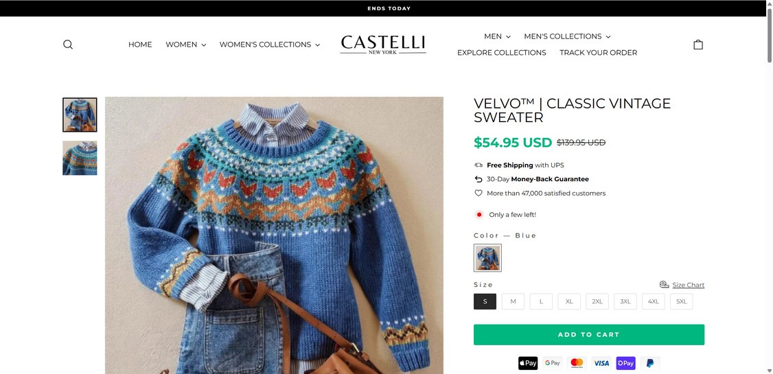Castelli-newyork.com shows the standard footprint of a scam storefront: aggressive social ads, unrealistic discounts, a polished template built to convert, and limited accountability through support that is often only an email address and a contact form.