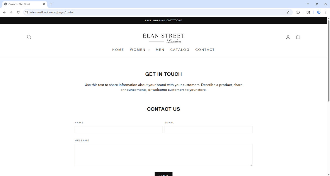 Authentic brands maintain social media pages for customer engagement. Elanstreetlondon.com’s total lack of accounts is highly unusual and suspicious.
