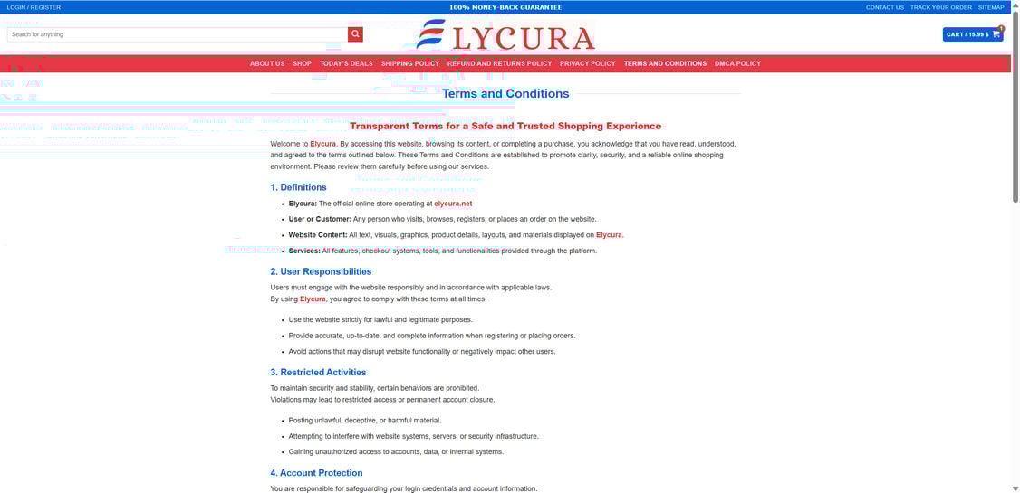 Several red flags reinforce that Elycura.net is not operating like a legitimate retailer: