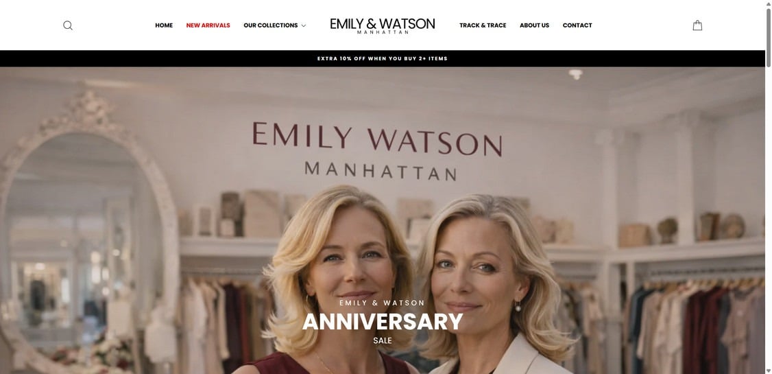 Emilywatson-manhattan.com shows multiple red flags consistent with a scam or highly deceptive storefront, including unrealistic discounts, limited support channels (often only an email/contact form), and patterns that match known fake retail operations. The safest assumption is that it is not a trustworthy retailer.