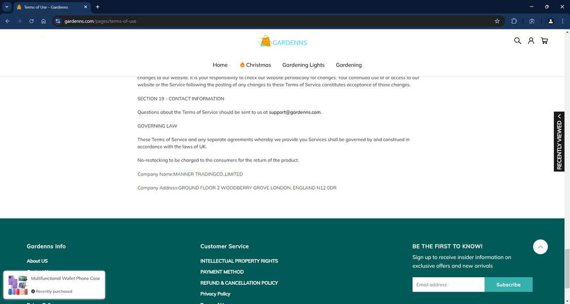 Gardenns.com displays many suspicious signs that it is a fraudulent website masquerading as a legitimate online retailer. Savvy shoppers should watch for these red flags: