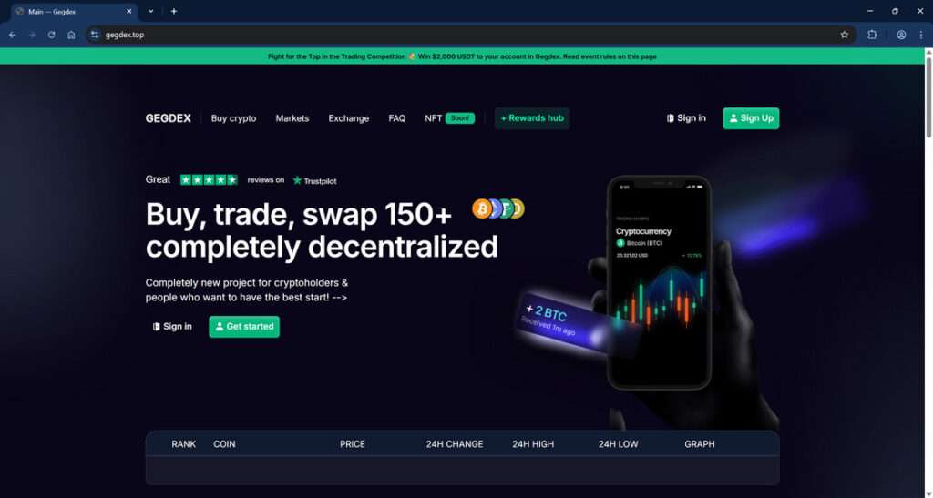 The fraudulent Gegdex.top platform and crypto giveaway do not actually exist. The site is a fake trading front to collect deposits into the scammers’ wallets. After accumulating enough funds, the site disappears and victims have no way to recover their money.