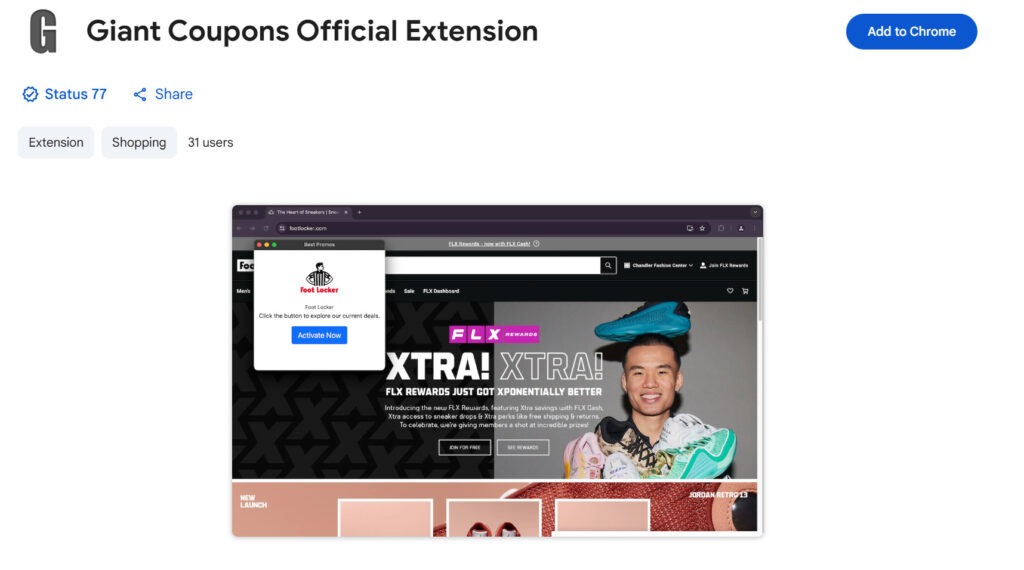 Image: Malicious advertisement distributing Giant Coupons Official Extension extension