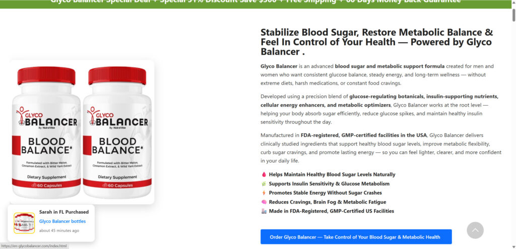 Glyco Balancer Blood Sugar is typically marketed as a “natural blood sugar support” supplement, often sold through advertorial pages and long-form videos. The claims vary by seller and domain.
