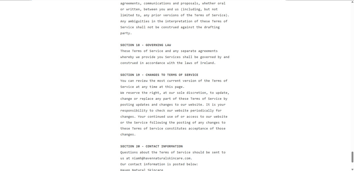 Havennaturalskincare.com does not provide that level of accountability. In most cases, the only “support” offered is a generic email address and a basic contact form. That is a major red flag because it is easy to ignore, delay, or abandon, leaving buyers with no practical way to resolve non-delivery, wrong items, charge disputes, or refunds.