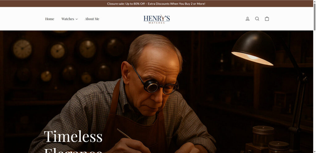 If you’ve recently come across ads on Facebook, Instagram, or TikTok claiming “Henry’s Watches is closing its doors after 33 years” and offering up to 80% off on luxury watches, you’re not alone. These aggressive “closure sale” campaigns have flooded social media feeds around the world. At first glance, the brand’s website appears legitimate, showing an elderly watchmaker named “Henry,” surrounded by antique clocks, telling a heartwarming story about craftsmanship, tradition, and passion.