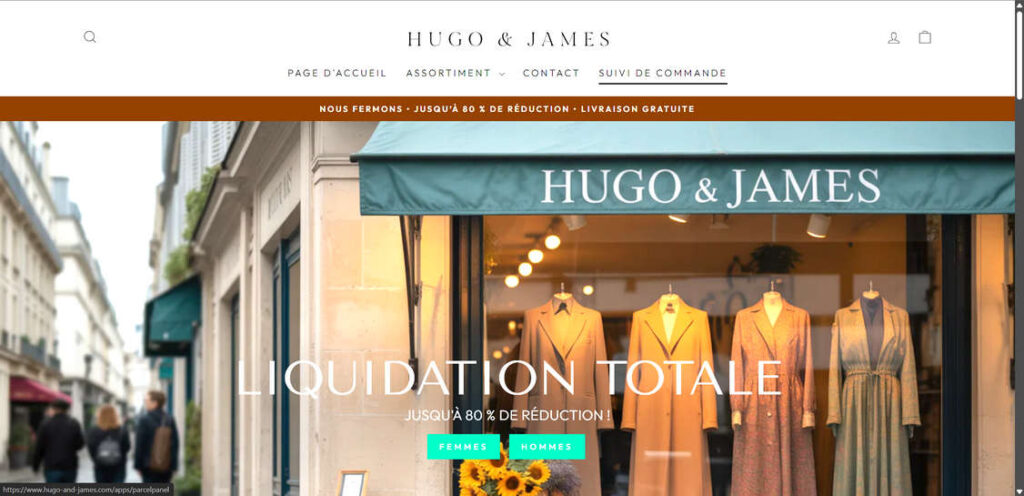 Hugo and James Boutique style sites typically do not look “obviously scammy.” They look clean, modern, and intentionally simple. They often use familiar layouts that shoppers associate with legitimate brands.
