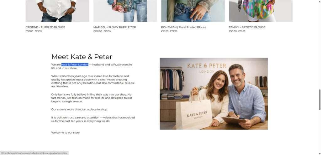 Kate & Peter London style sites typically do not look “obviously scammy.” They look clean, modern, and intentionally simple. They often use familiar layouts that shoppers associate with legitimate brands.