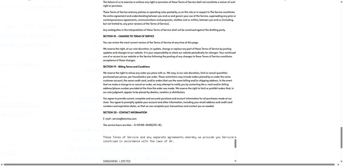 Kenmiso.com does not provide that level of accountability. In most cases, the only “support” offered is a generic email address and a basic contact form. That is a major red flag because it is easy to ignore, delay, or abandon, leaving buyers with no practical way to resolve non-delivery, wrong items, charge disputes, or refunds.