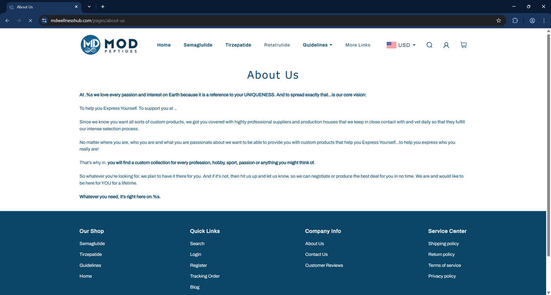 All product info and images are stolen from other major retailers. Mdwellnesshub.com lacks any original content showing its illegitimacy.
