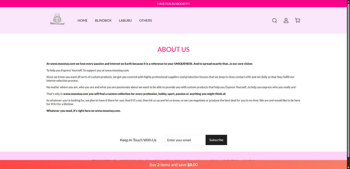 Do not waste time or money shopping at Moostay.com. You will likely end up with compromised personal data, fraudulent charges, or no products at all. Only shop at reputable online retailers to avoid scams.