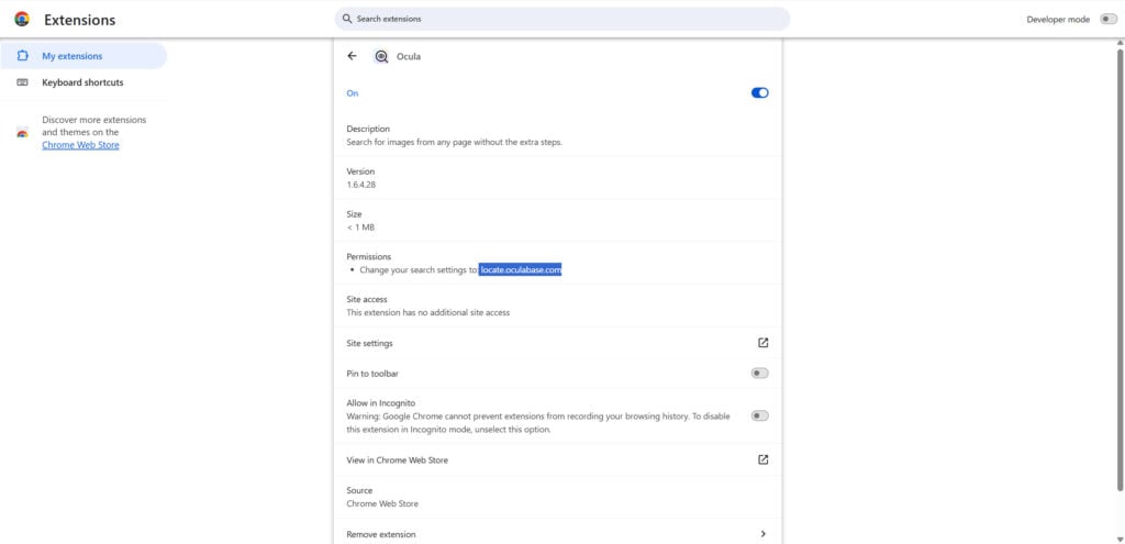 Your browser is being redirected to Ocula because the “Ocula” extension or program is installed on your computer. Often, this type of program is offered through advertisements or bundled with other software, leaving the user puzzled where this software came from.