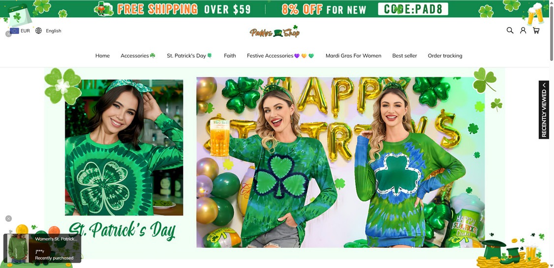 Paddysshop.com shows multiple indicators consistent with a scam storefront posing as a legitimate retailer. If you see several of the warning signs below in one place, the safest move is to exit the site and avoid checkout.
