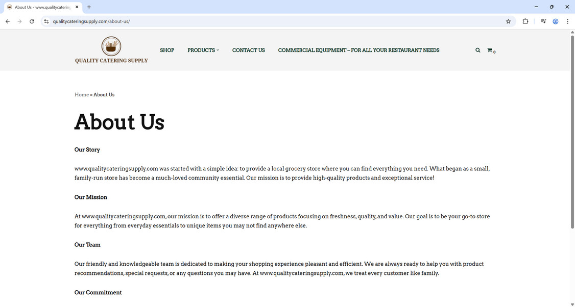 All product info and images are stolen from other major retailers. Qualitycateringsupply.com lacks any original content showing its illegitimacy.