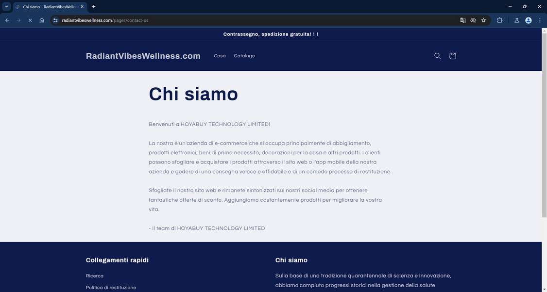 In conclusion, Radiantvibeswellness.com is a scam shopping website that should be avoided at all costs. This fraudulent site follows a common scam formula: entice customers with unrealistic deals, collect payment and personal information, and then never fulfill orders. The website has all the red flags of an online shopping scam, including no legitimate contact information, stolen product images, and copied legal pages. If you come across Radiantvibeswellness.com or other deals that seem too good to be true, trust your instincts. Protect yourself, your money, and your information by steering clear of this deceptive platform masquerading as a shop. Stick to well-known e-commerce sites and be wary of rock-bottom prices to avoid being the victim of a scam.