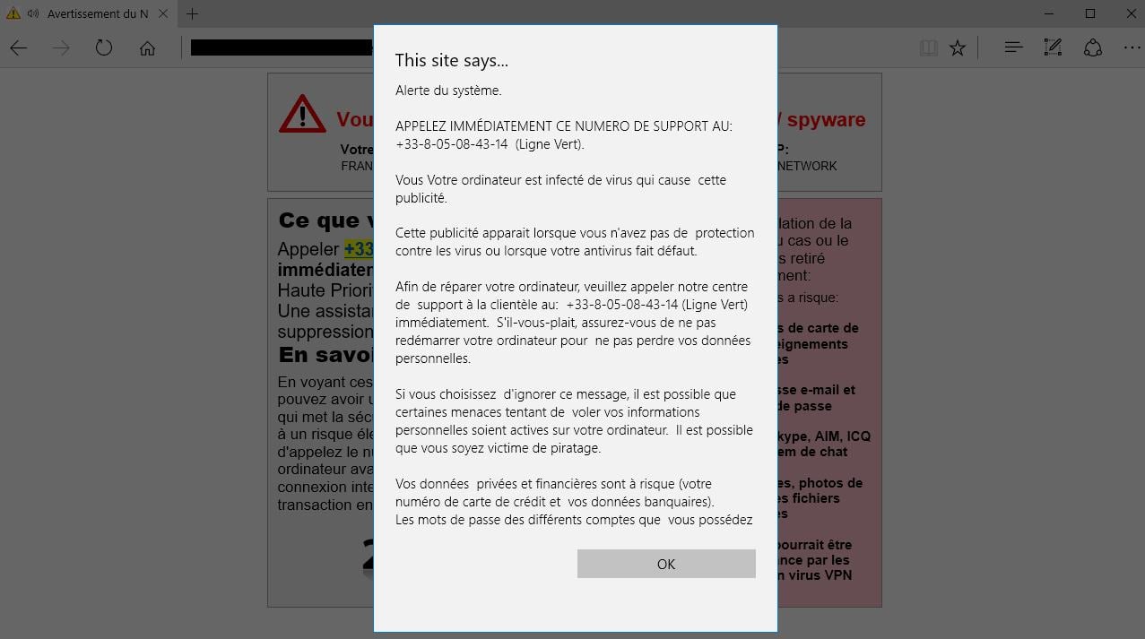 When this malicious program is installed, whenever you will browse the Internet, an ad from 192837bsdgh22.com will randomly pop-up. This pop-up ad will state that you computer is infected and that you need to call their paid support service to remove the infection.