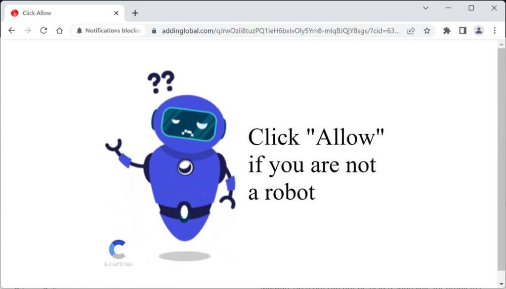 Addinglobal.com is a malicious website that uses the browser’s built-in push notifications system to show spam pop-up ads on victims’ devices.