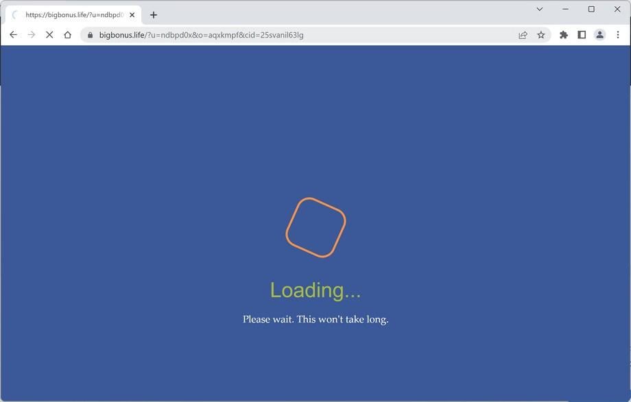 Bigbonus.life is a malicious site that redirects a browser to an advertisement, the ads are typically for unwanted browser extensions, surveys, adult sites, online web games, fake software updates, and unwanted programs.