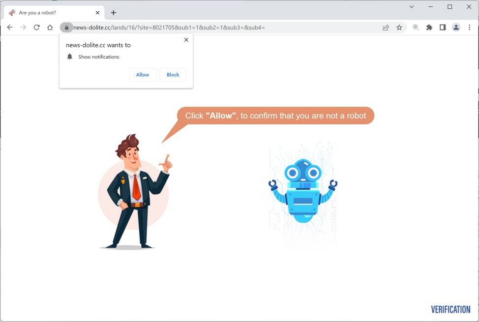 News-dolite.cc is a site that displays fake messages to trick you into subscribing to its spam push notifications.