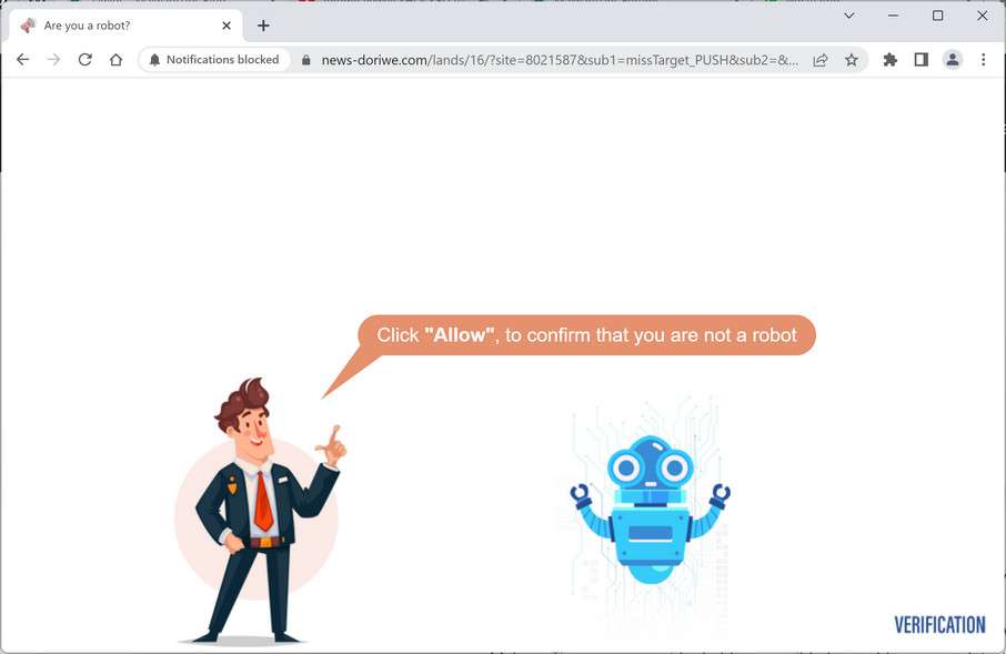News-doriwe.com is a malicious website that uses the browser’s built-in push notifications system to show spam pop-up ads on victims’ devices.