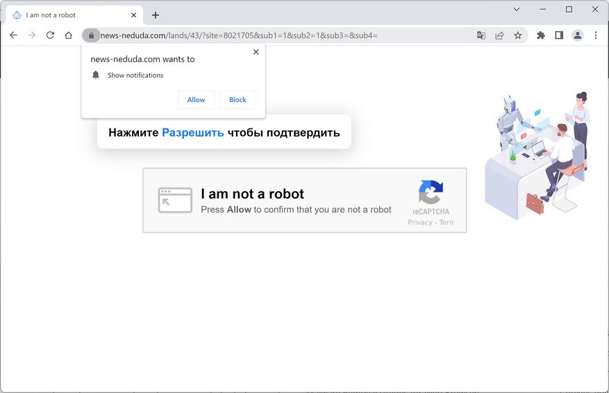 News-neduda.com is a malicious site that displays fake messages to trick you into subscribing to its spam push notifications.