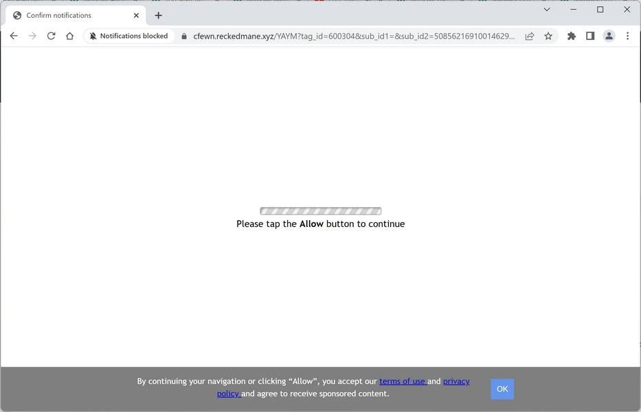 Reckedmane.xyz is a malicious site that displays fake messages to trick you into subscribing to its spam push notifications.