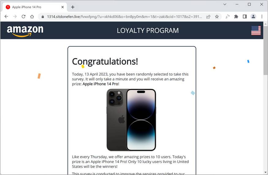 Sitdonefen.live looks like a legitimate survey site at first glance, but upon closer inspection, it becomes clear that it is a fake website designed to trick users into giving up their personal information. The site often claims that you have been randomly selected to take part in a survey and that you can win a valuable prize upon completion.