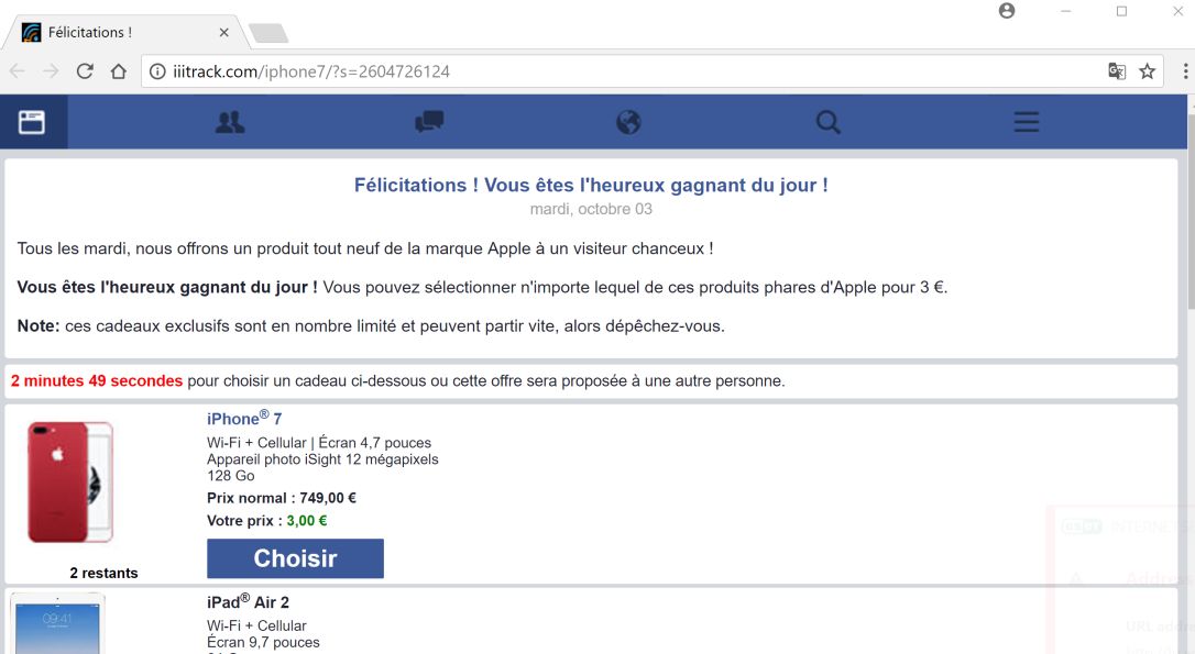 The Vous êtes l’heureux gagnant du jour pop-up ads will display the below message: