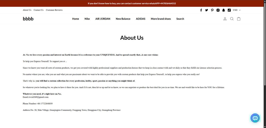 Authentic brands maintain social media pages for customer engagement. Replicashoescollector.com’s total lack of accounts is highly unusual and suspicious.