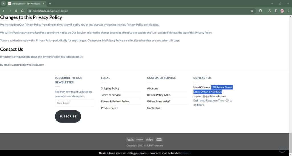 On top of selling sham goods or no goods at all, Rjpwholesale.com also unscrupulously collects customers’ personal and financial data during checkout, including full names, home addresses, phone numbers, credit card details, and more. This information is likely used or sold for nefarious purposes like identity theft, credit card fraud, or sharing on dark web marketplaces.
