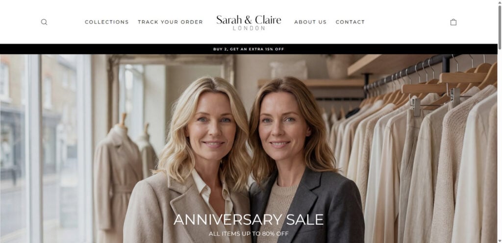 Sarah & Claire London style sites typically do not look “obviously scammy.” They look clean, modern, and intentionally simple. They often use familiar layouts that shoppers associate with legitimate brands.