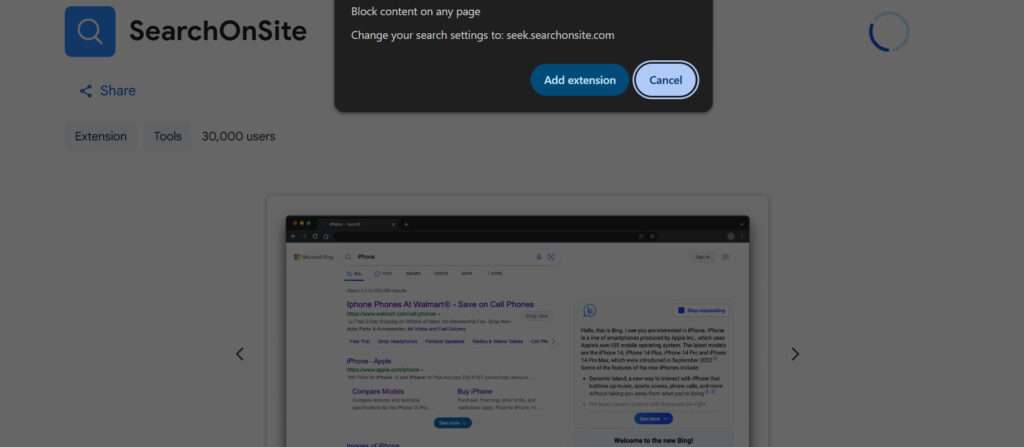 The “SearchOnSite” browser extension or program is installed on your computer