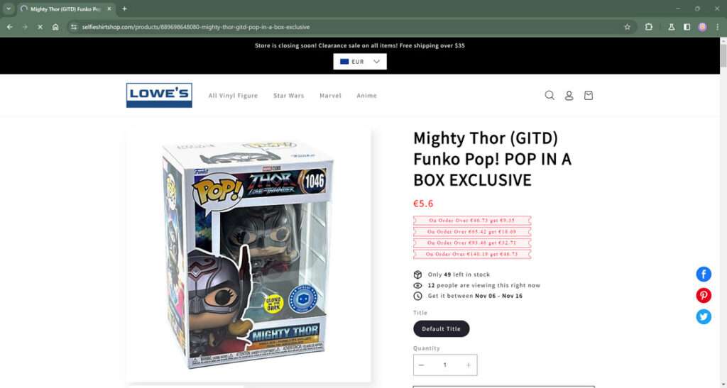 - Extreme, unrealistic discounts such as “90% OFF,” “Store Closing Sale,” or “Final Liquidation.” Real retailers rarely discount new products this aggressively.