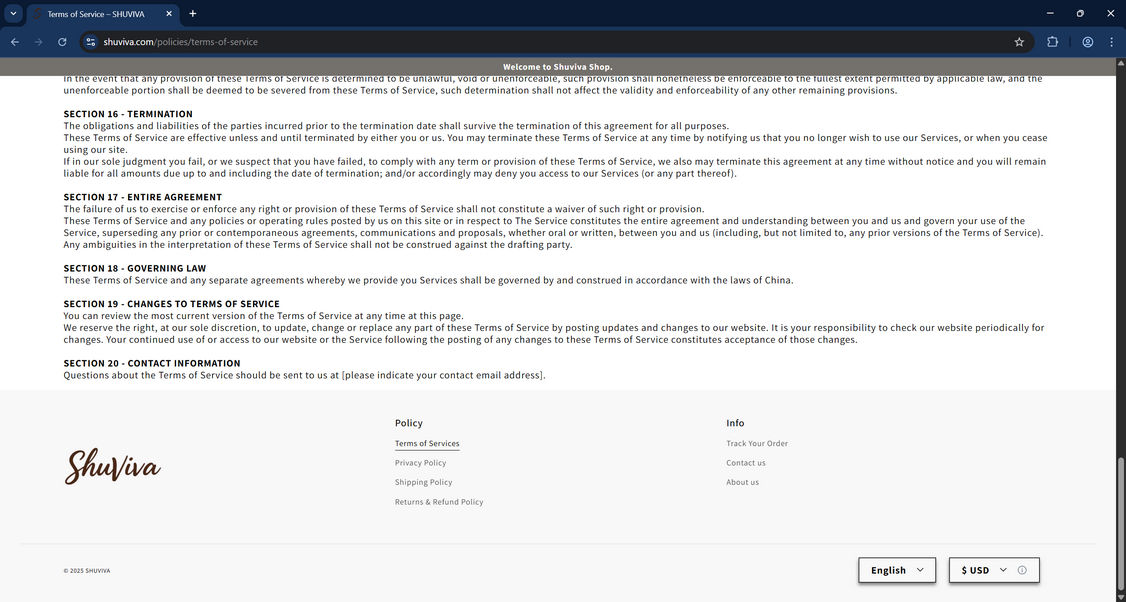 Our research indicates Shuviva.com is likely part of a larger interconnected scam network based in China. This network operates countless fake online retail sites with the sole intent of defrauding customers.