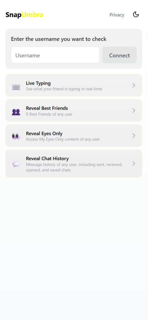No. It is not affiliated with Snapchat, and Snapchat does not provide any official tool that lets you view someone’s private chats, private snaps, or protected content by typing a username into a website.