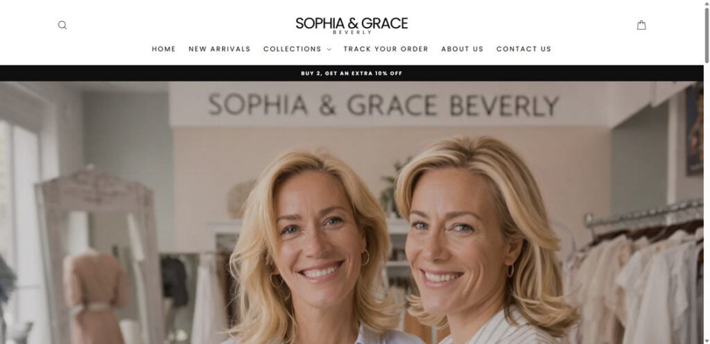 Sophia Grace Beverly style sites typically do not look “obviously scammy.” They look clean, modern, and intentionally simple. They often use familiar layouts that shoppers associate with legitimate brands.