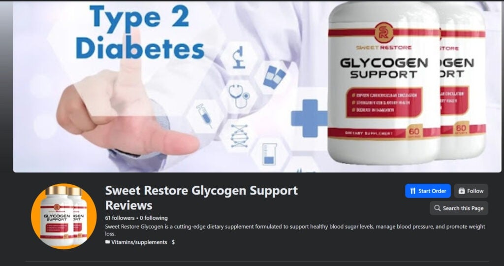 Sweet Restore Glycogen Support is commonly promoted through a scam-style diabetes supplement funnel that relies on big promises, borrowed credibility, and high-pressure tactics.