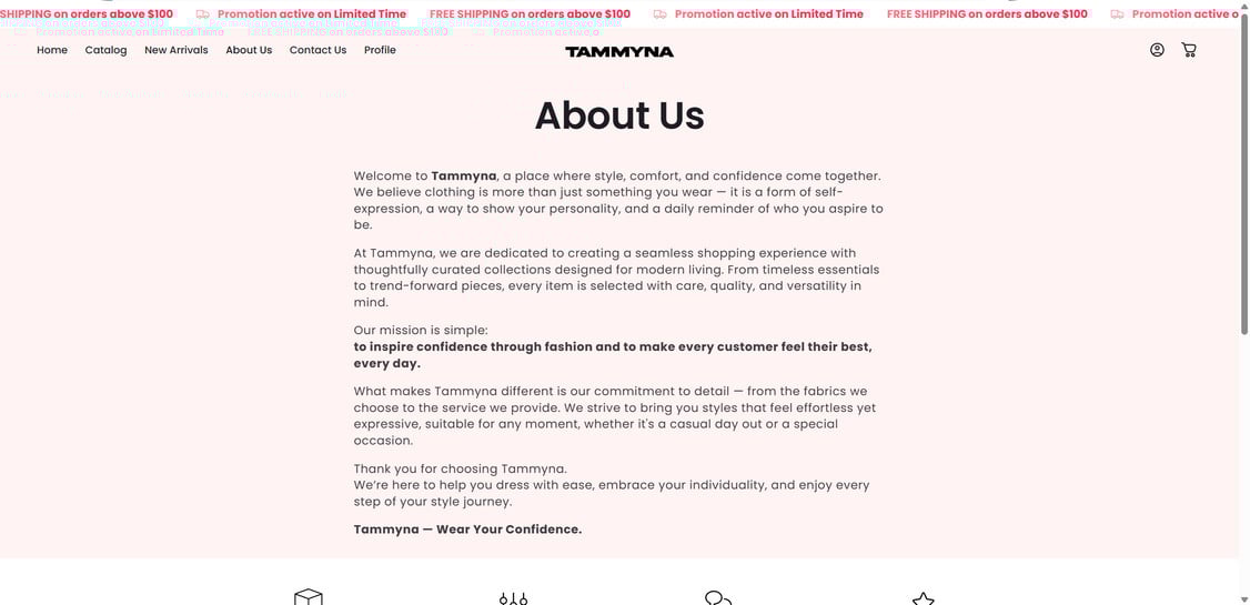 Tammyna.com shows the standard footprint of a scam storefront: aggressive social ads, unrealistic discounts, a polished template built to convert, and limited accountability through support that is often only an email address and a contact form.