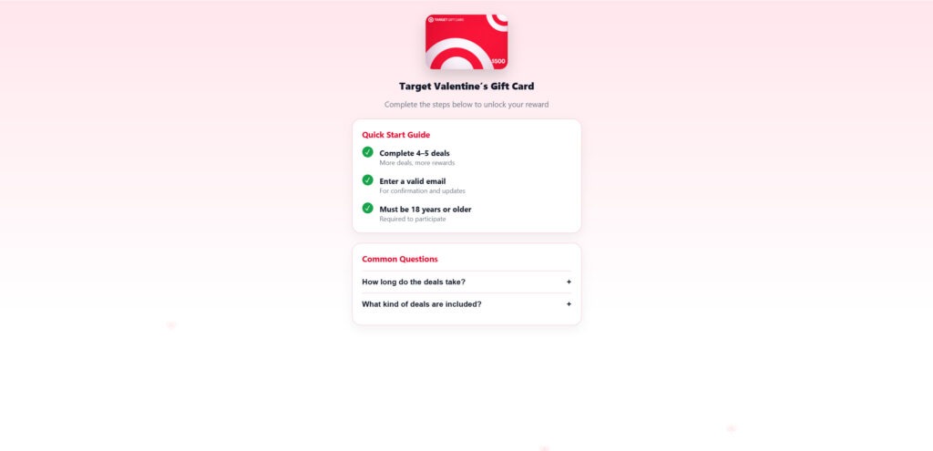In most cases, no. The “Target Valentine’s Gift Card” promise is used as bait to push users into completing affiliate offers. The gift card is not a standard, guaranteed reward in the way the page implies.
