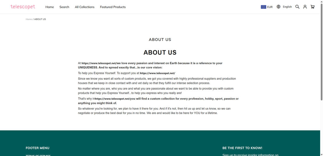 Telescopet.com does not clearly identify who operates the business. When a site hides ownership, company registration details, and accountable leadership, it is a strong sign you should not trust it with payments or personal data.