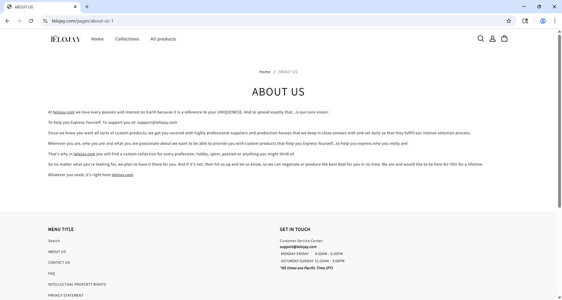 All product info and images are stolen from other major retailers. Telojay.com lacks any original content showing its illegitimacy.