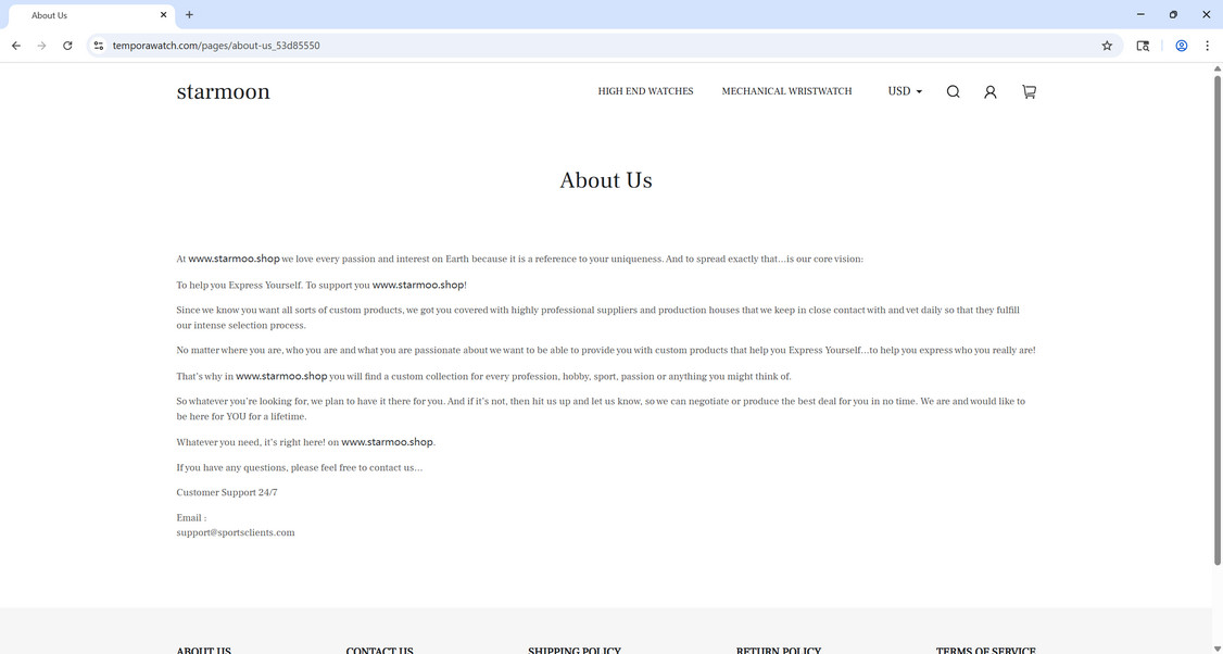 Scammers behind Temporawatch.com use spam emails and social media platforms like Facebook, Instagram, and TikTok to promote the site and lure in victims. This fraudulent site uses incredibly low prices and stolen product images to entice unsuspecting shoppers.